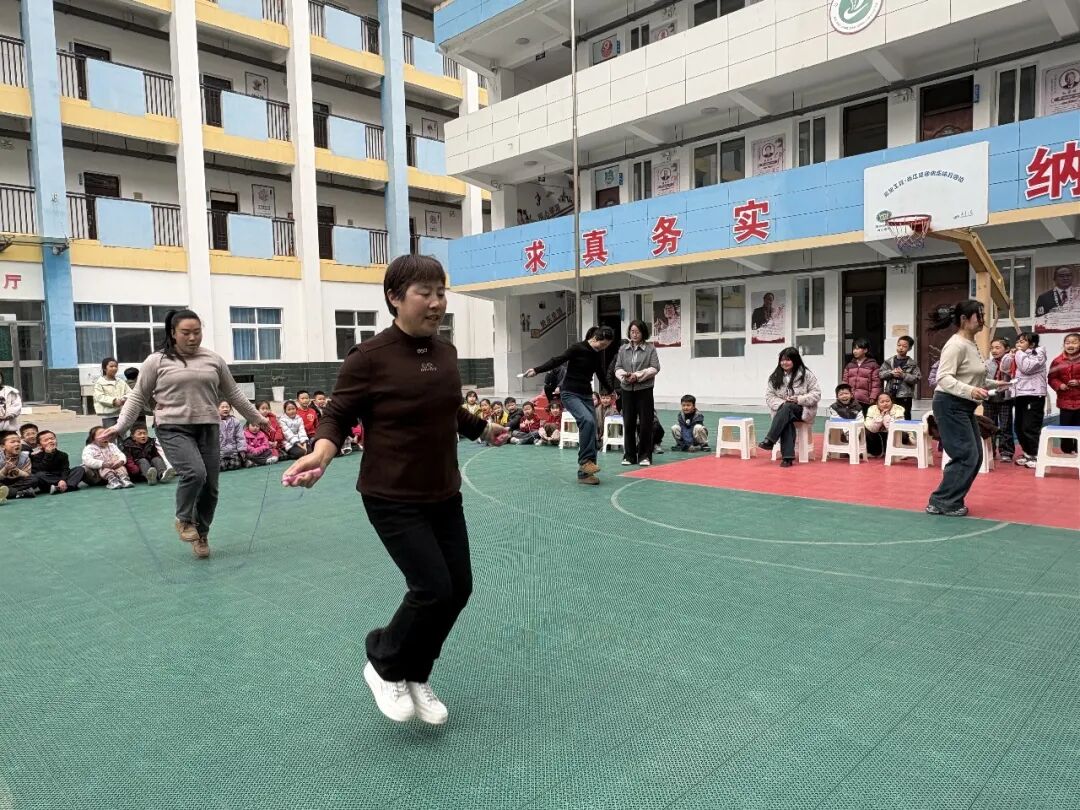 ▲白水江镇中心小学开展趣味运动会,设置跳绳、投壶、踢毽子、乒乓球竞速等游戏,为教师们提供了一个交流平台,拉近了同事间的距离,增进了感情。